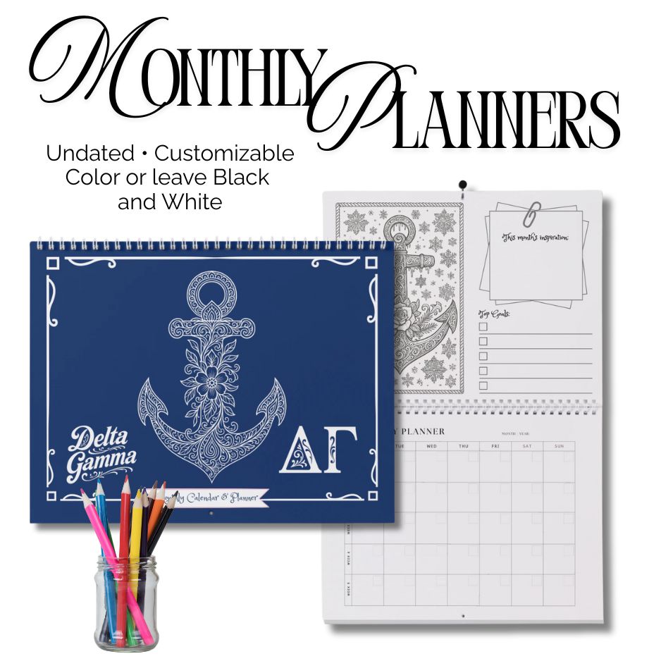 Colorable Customizable Sorority Month-at-a-Glance Planner Pages