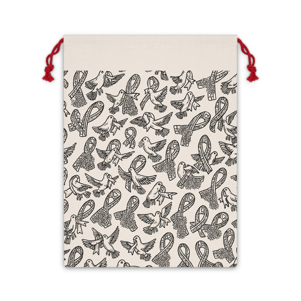 Reusable Gift Bag - Survivor Ribbons and Birds Line Art Design