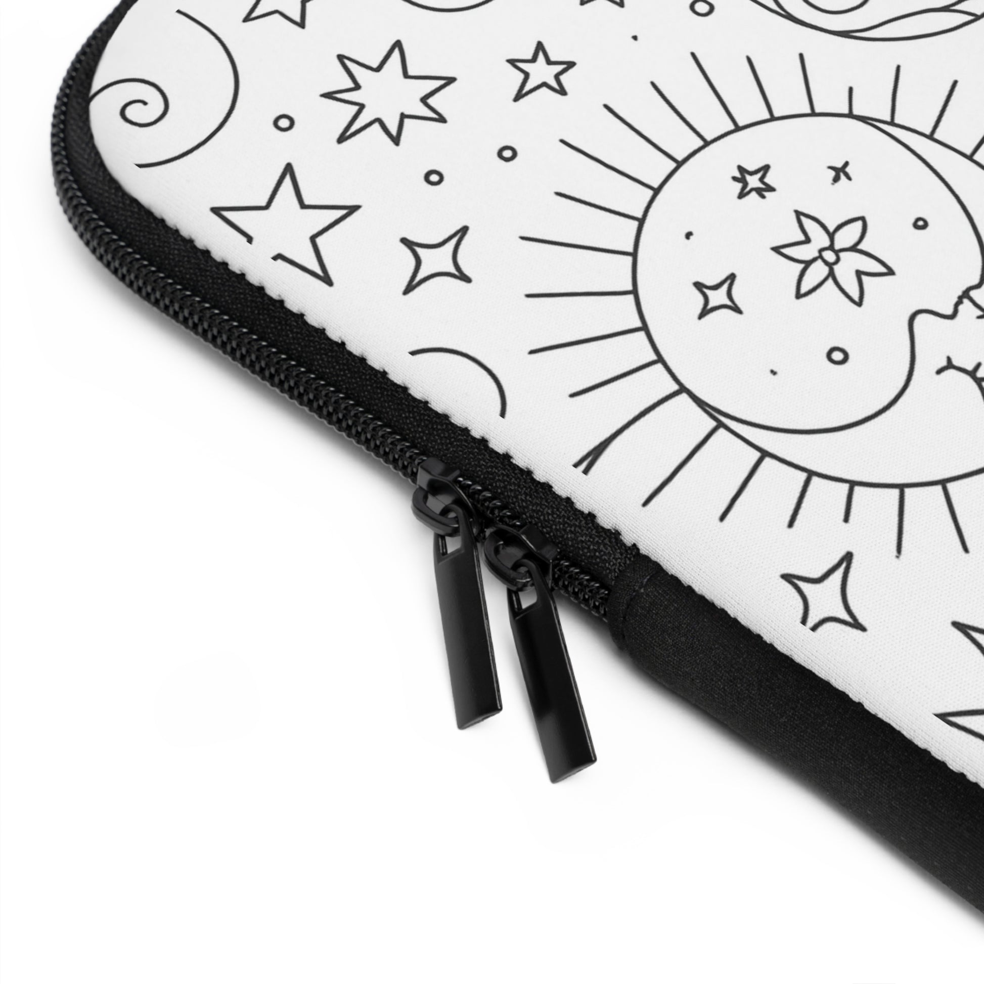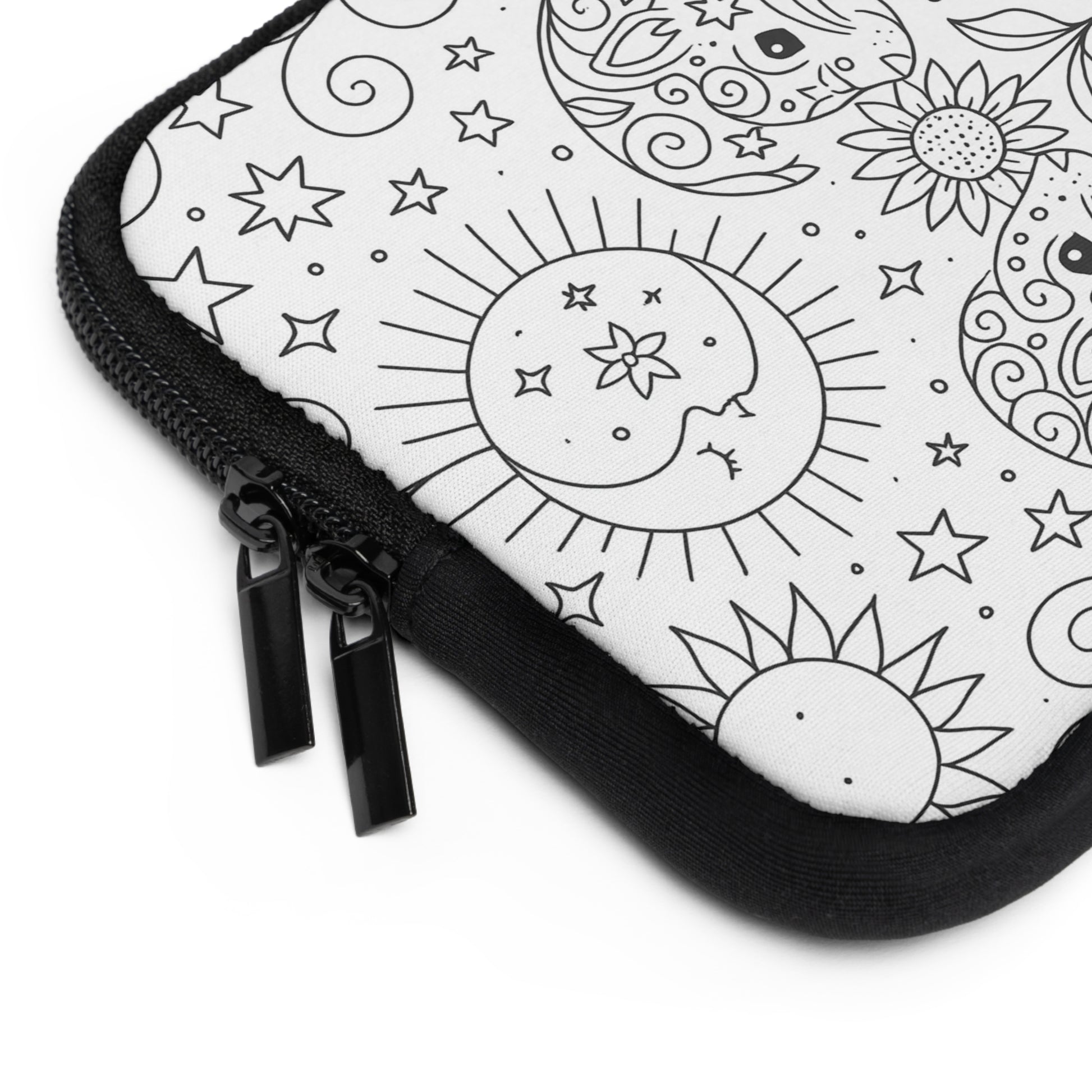 A slim neoprene laptop sleeve that brings calm and personality to daily carry. The front features a hand-drawn, black-and-white floral-and-dove illustration with a small heart monogram area, while the back remains solid black for a clean, low-profile look. Soft foam padding cushions your device against everyday bumps. Dual zippers glide smoothly for quick access, and the water-resistant build keeps spills and light rain from reaching your laptop. Lightweight and available in multiple sizes, this sleeve slips easily into backpacks or tote bags and adds a gentle, artistic touch to study sessions, campus walks, or coffee shop workdays.