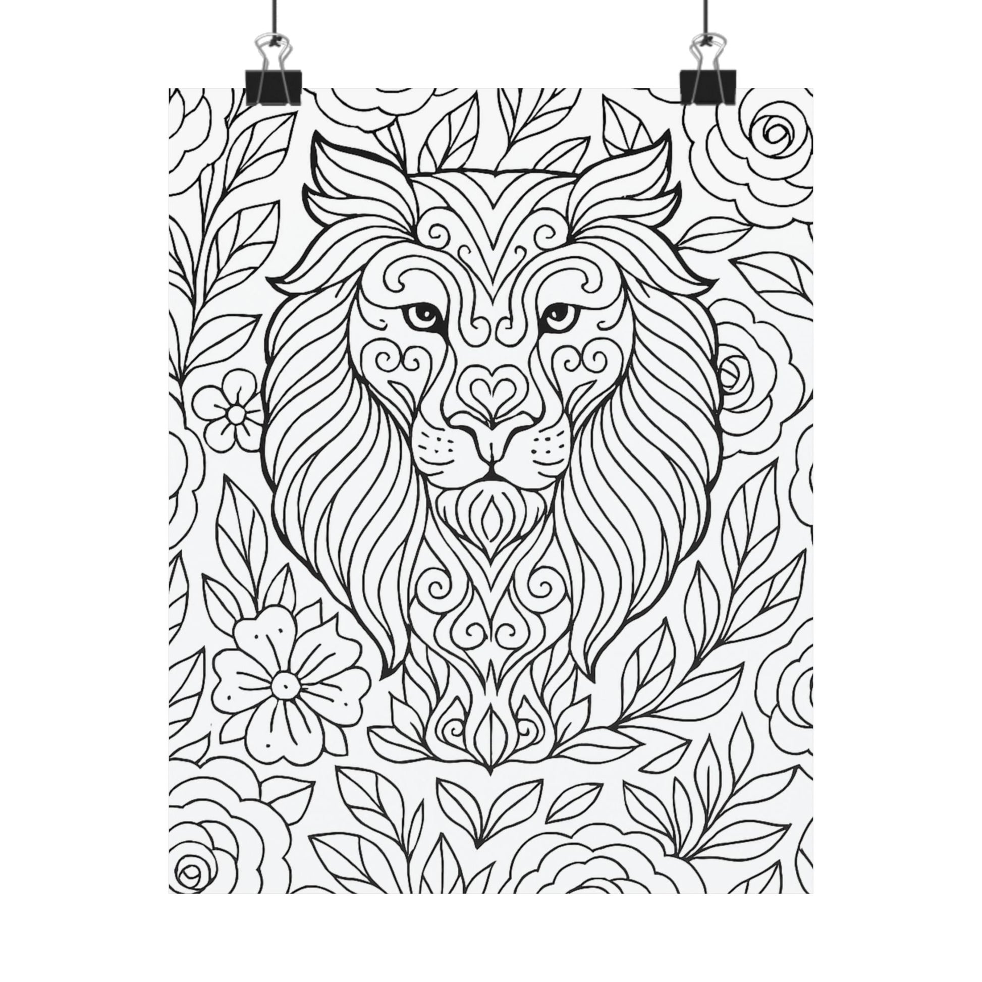 A Lion poster that can be colored or left black and white, perfect for art enthusiasts and those looking to add a unique touch to their home decor. Ideal for individuals who enjoy creative activities and want to personalize their living space. Relevant for occasions such as birthdays, housewarmings, and art-themed parties.