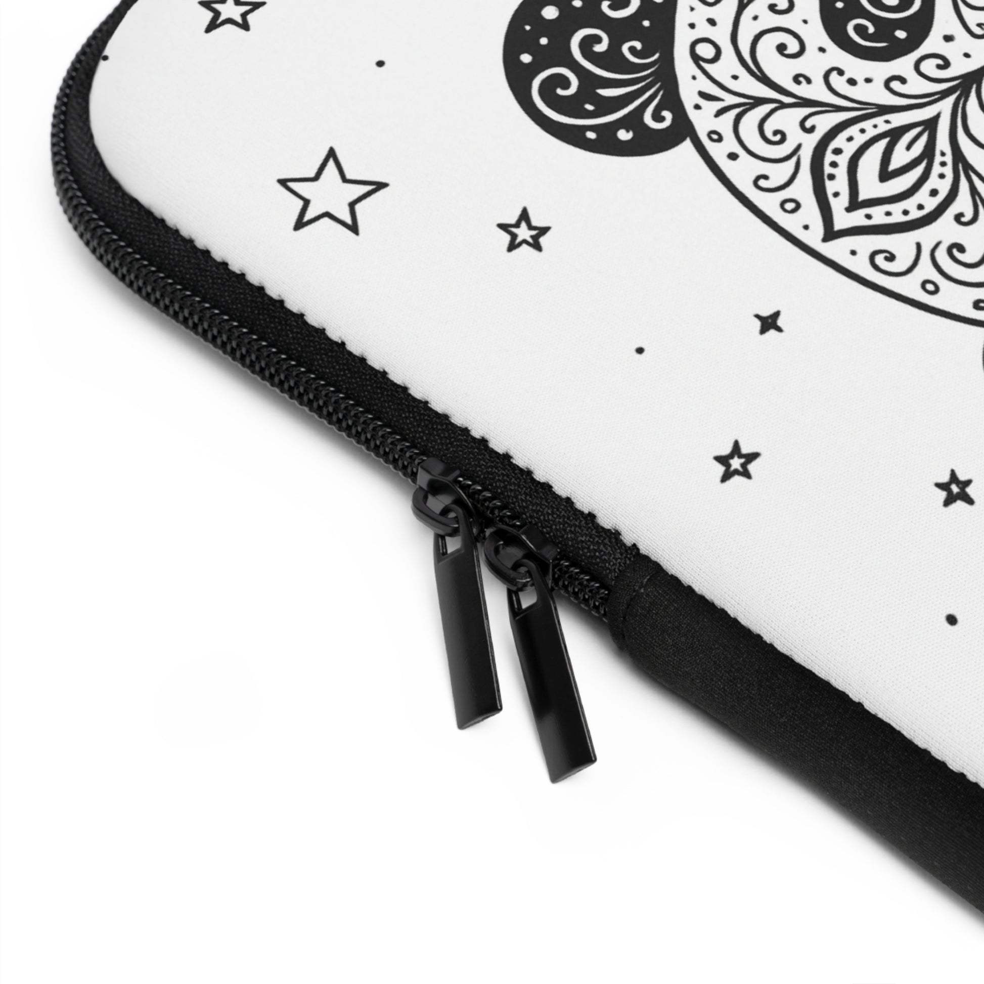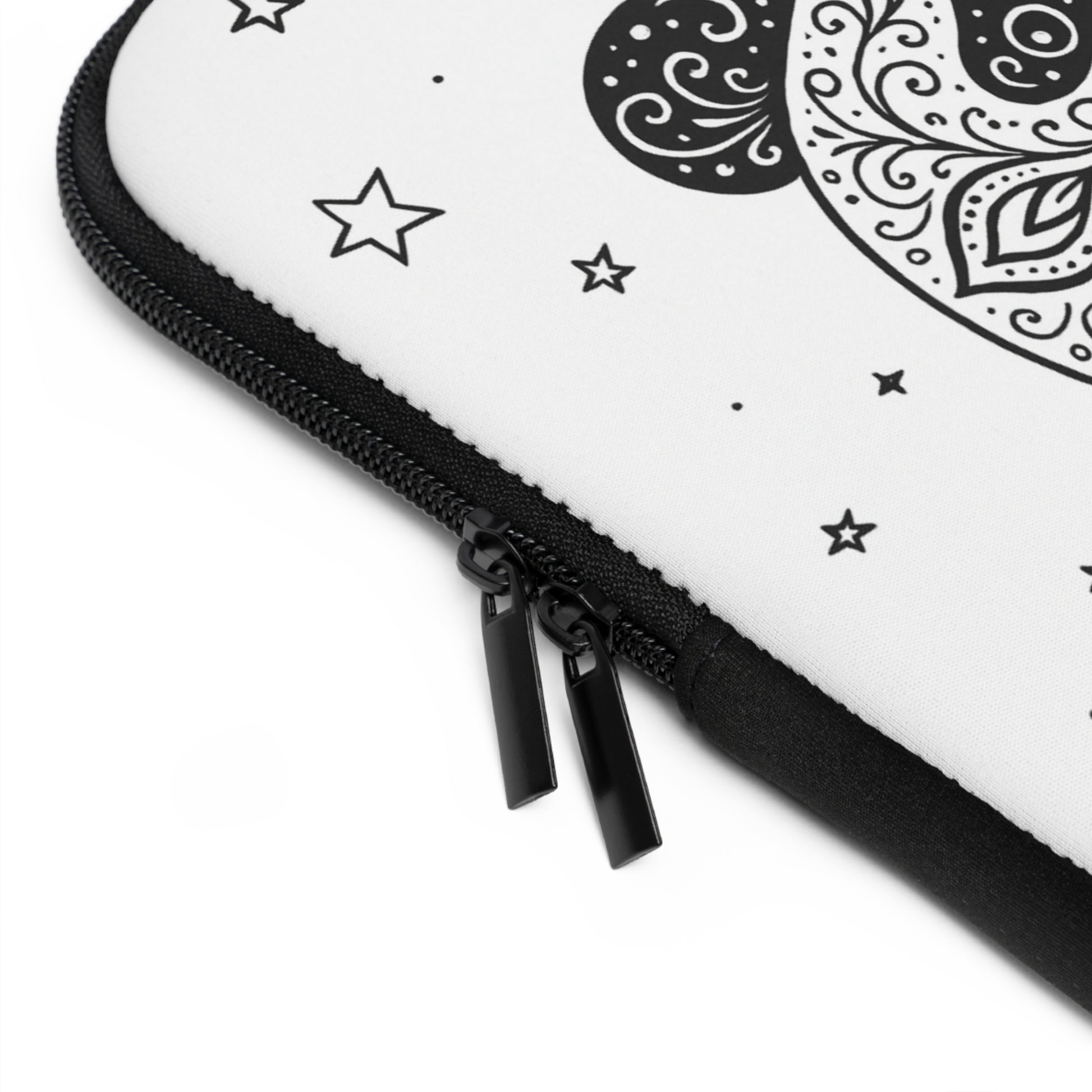 A slim neoprene laptop sleeve that brings calm and personality to daily carry. The front features a hand-drawn, black-and-white floral-and-dove illustration with a small heart monogram area, while the back remains solid black for a clean, low-profile look. Soft foam padding cushions your device against everyday bumps. Dual zippers glide smoothly for quick access, and the water-resistant build keeps spills and light rain from reaching your laptop. Lightweight and available in multiple sizes, this sleeve slips easily into backpacks or tote bags and adds a gentle, artistic touch to study sessions, campus walks, or coffee shop workdays.