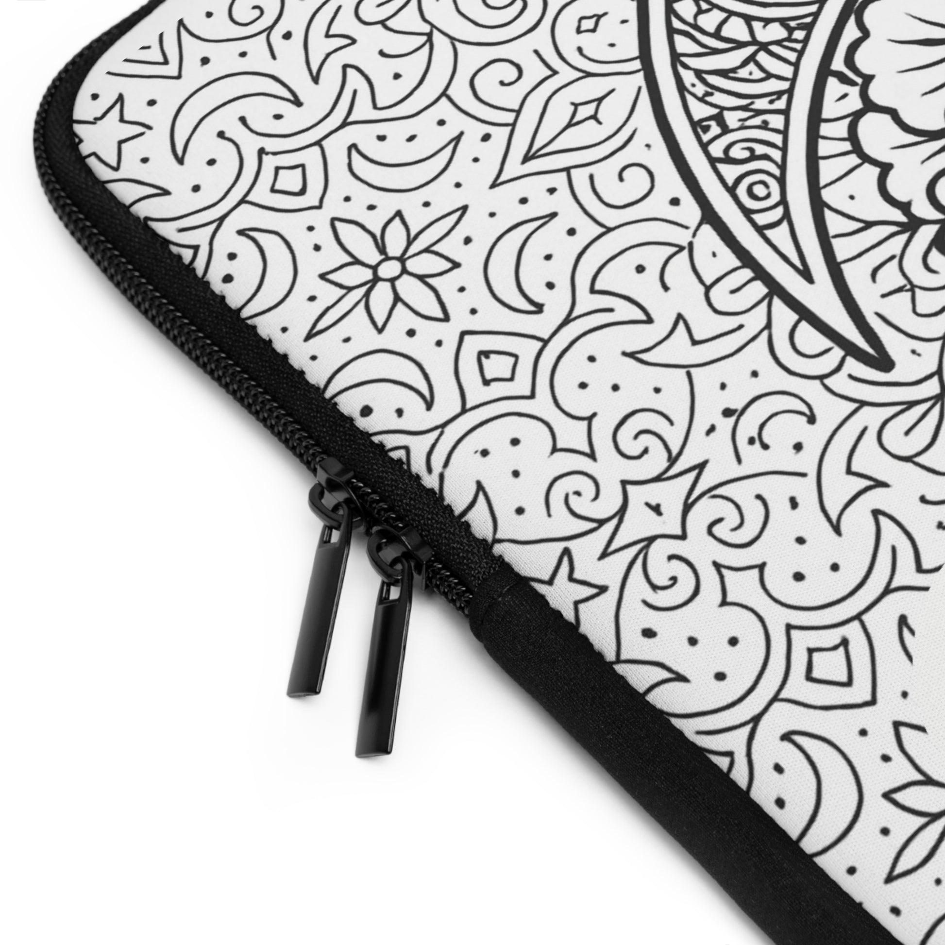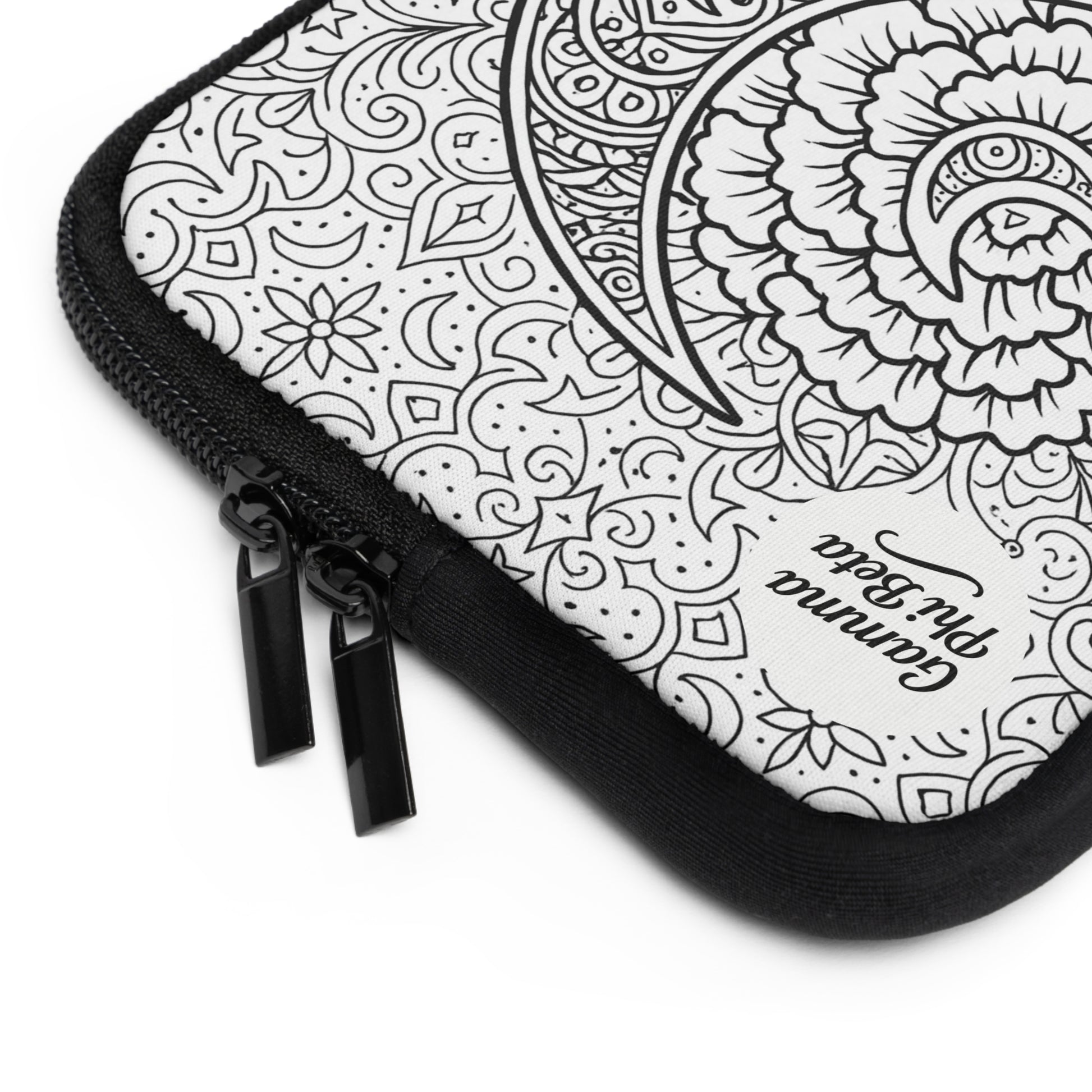 A slim neoprene laptop sleeve that brings calm and personality to daily carry. The front features a hand-drawn, black-and-white floral-and-dove illustration with a small heart monogram area, while the back remains solid black for a clean, low-profile look. Soft foam padding cushions your device against everyday bumps. Dual zippers glide smoothly for quick access, and the water-resistant build keeps spills and light rain from reaching your laptop. Lightweight and available in multiple sizes, this sleeve slips easily into backpacks or tote bags and adds a gentle, artistic touch to study sessions, campus walks, or coffee shop workdays.