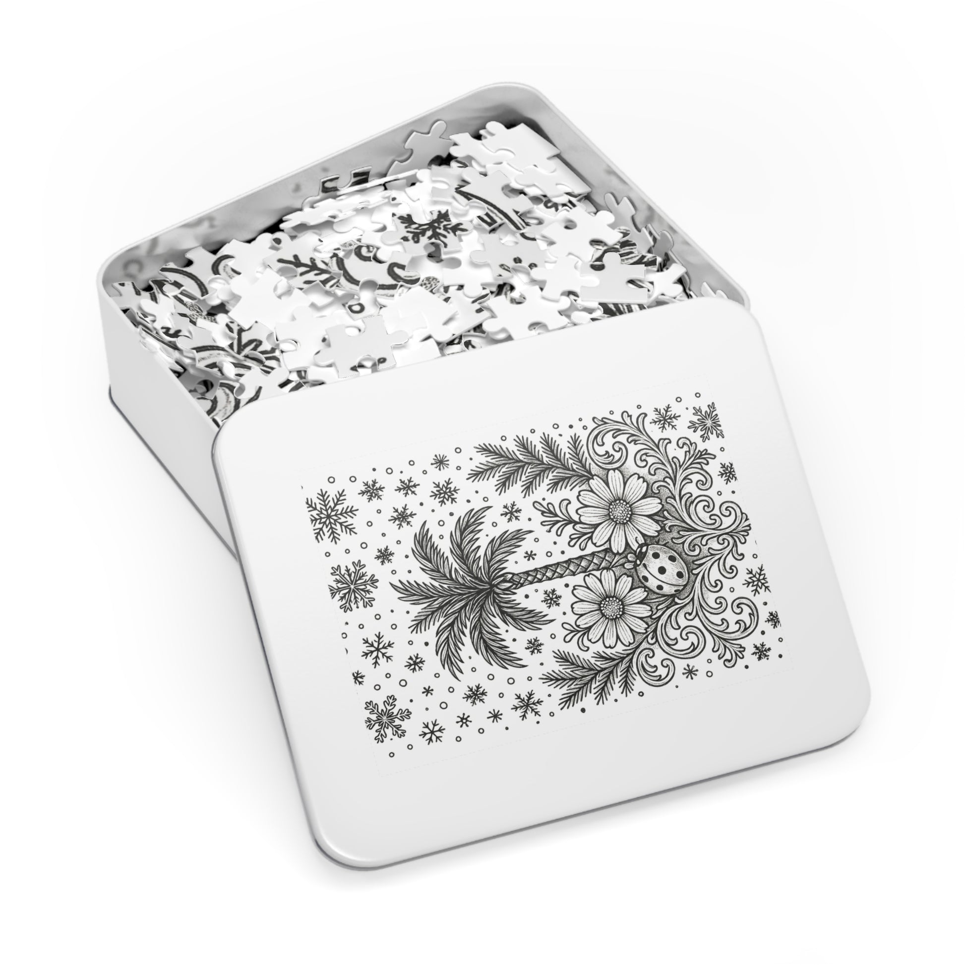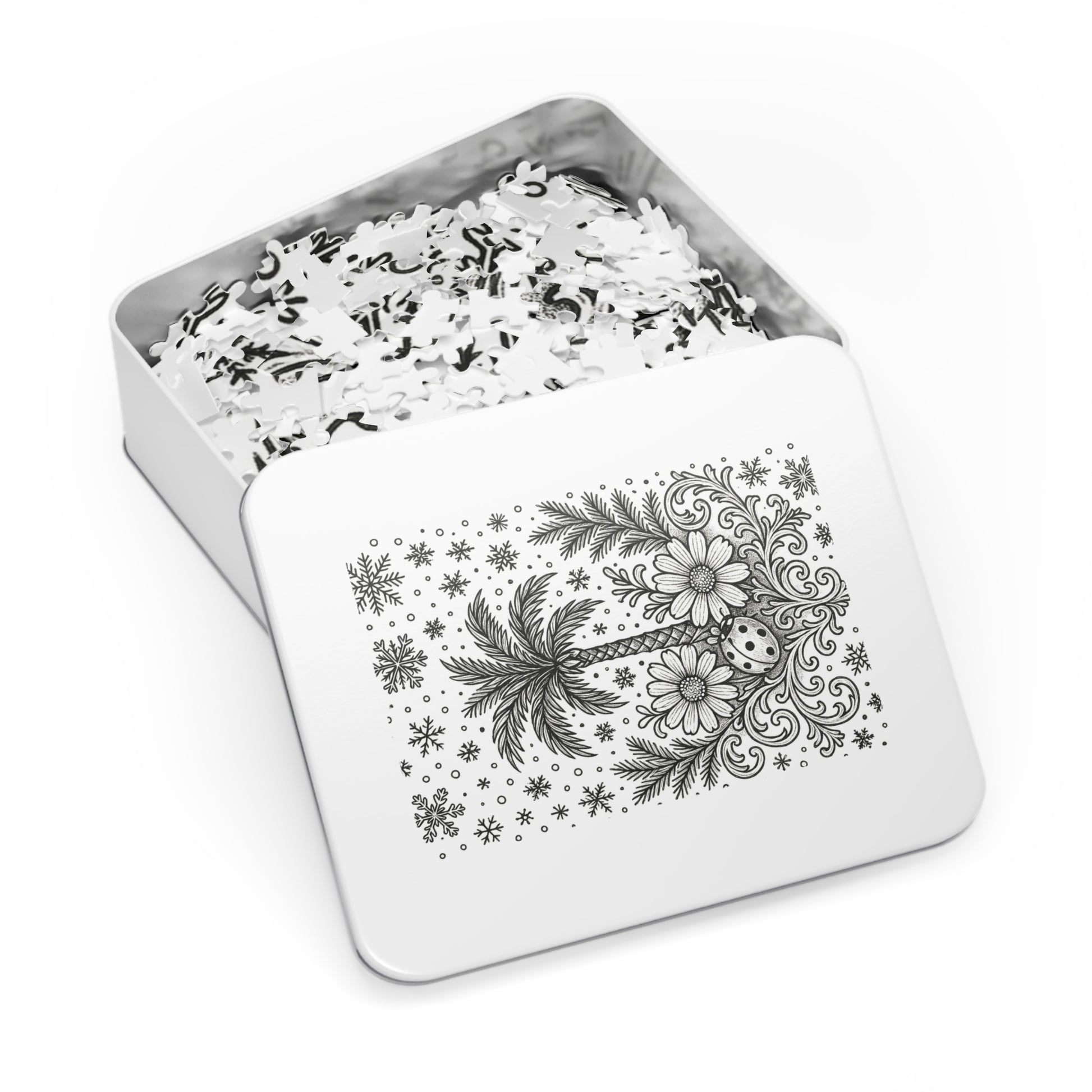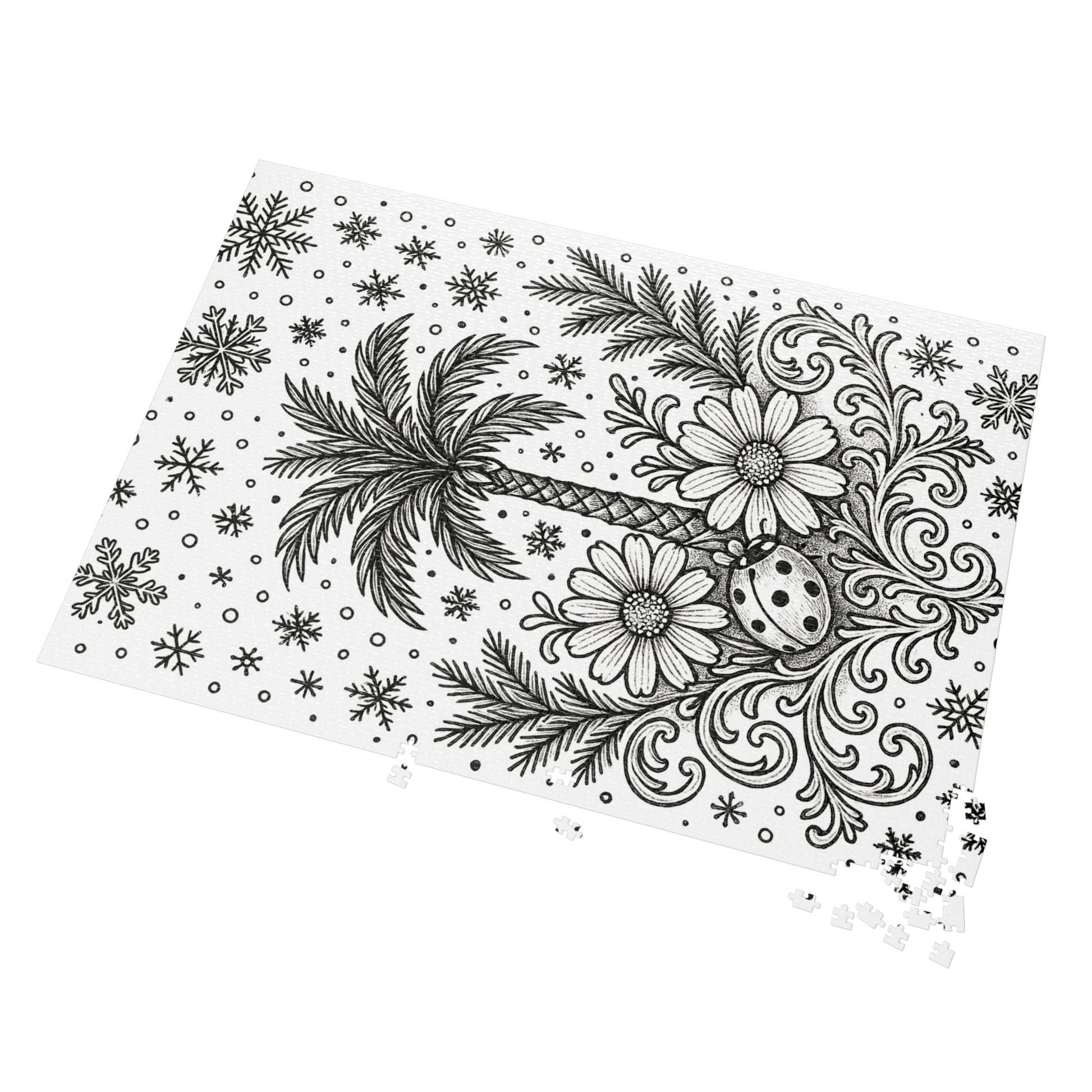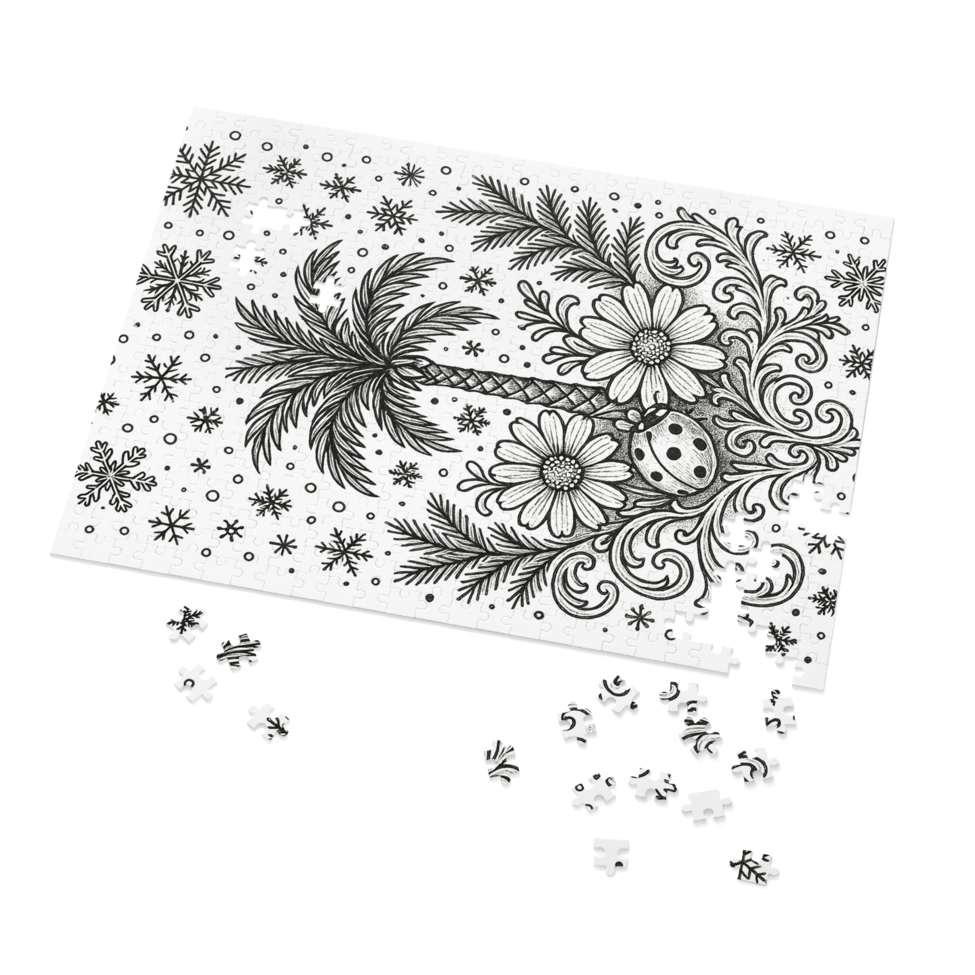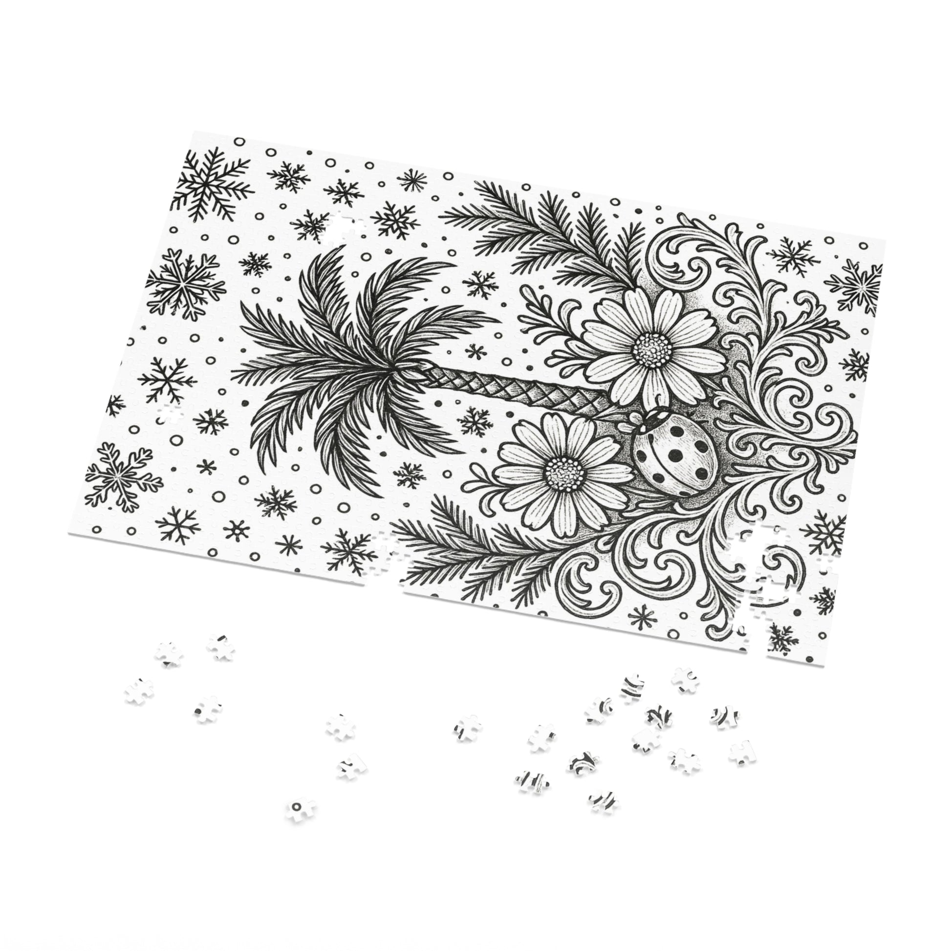 A beautiful puzzle featuring a beautiful crown and palm tree that can be colored or left black and white, providing a calming and relaxing activity. Perfect for puzzle enthusiasts, artists, and nature lovers. Ideal for gifting on birthdays, holidays, or as a thoughtful self-care treat.