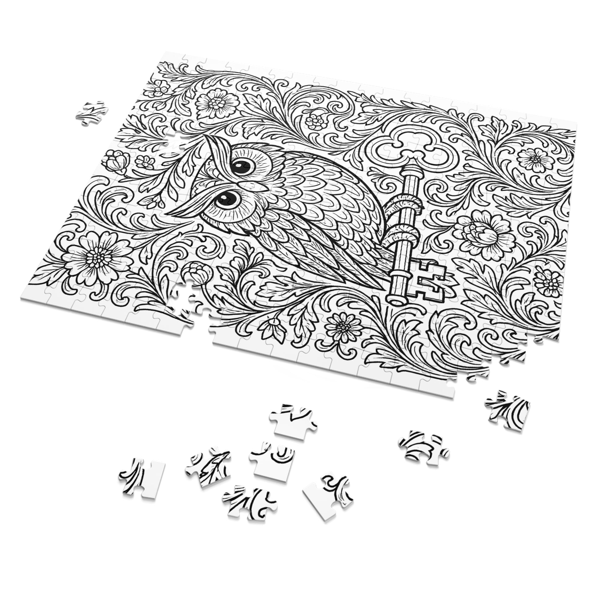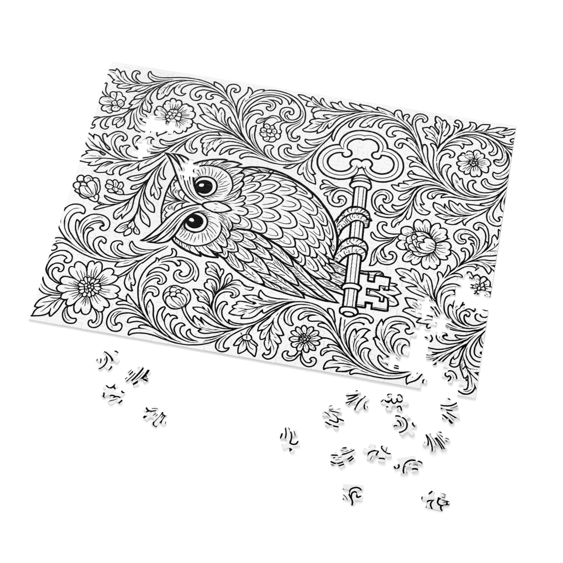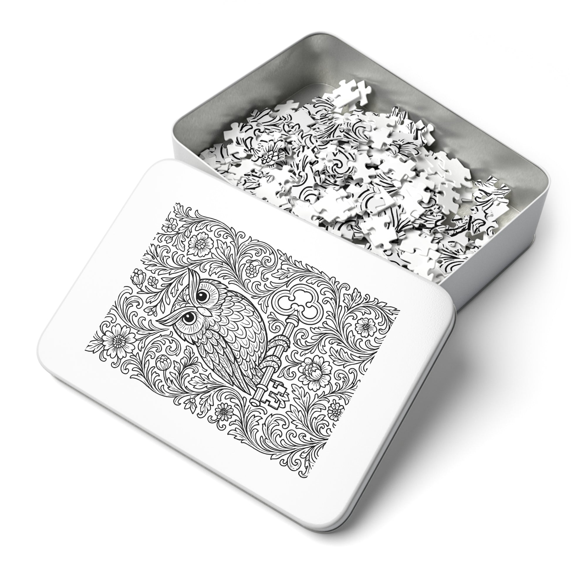 A beautiful owl and key puzzle that can be colored or left black and white, providing a calming and relaxing activity. Perfect for puzzle enthusiasts, artists, and nature lovers. Ideal for gifting on birthdays, holidays, or as a thoughtful self-care treat.