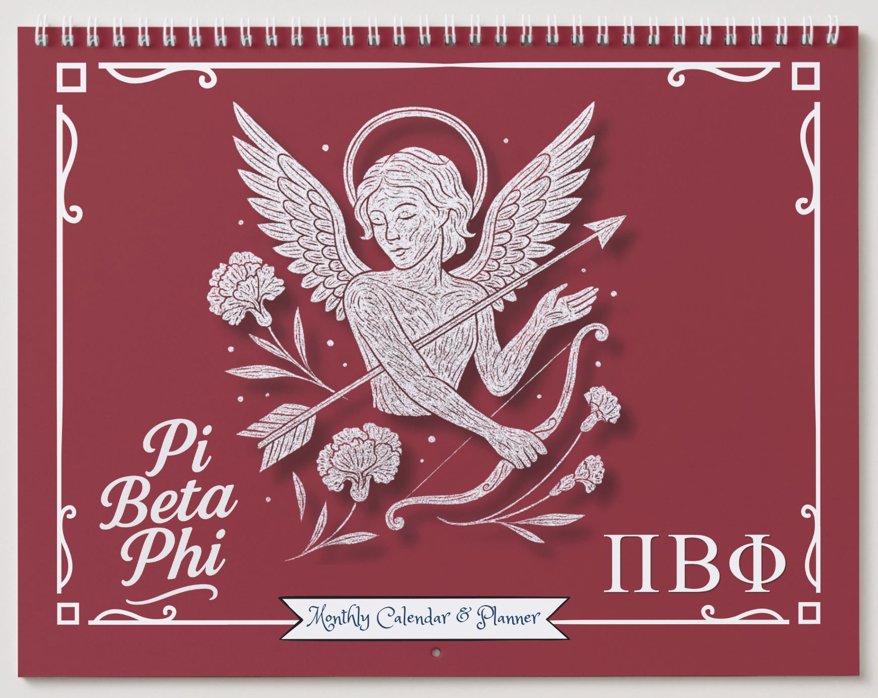 Celebrate your Pi Beta Phi pride with this charming sorority wall calendar featuring beautifully detailed illustrations inspired by the sisterhood’s cherished symbols—the graceful angel and the iconic arrow woven throughout the year. Each month brings a fresh touch of meaning and whimsy, blending timeless elegance with the bright, confident spirit that Pi Phi women know and love.