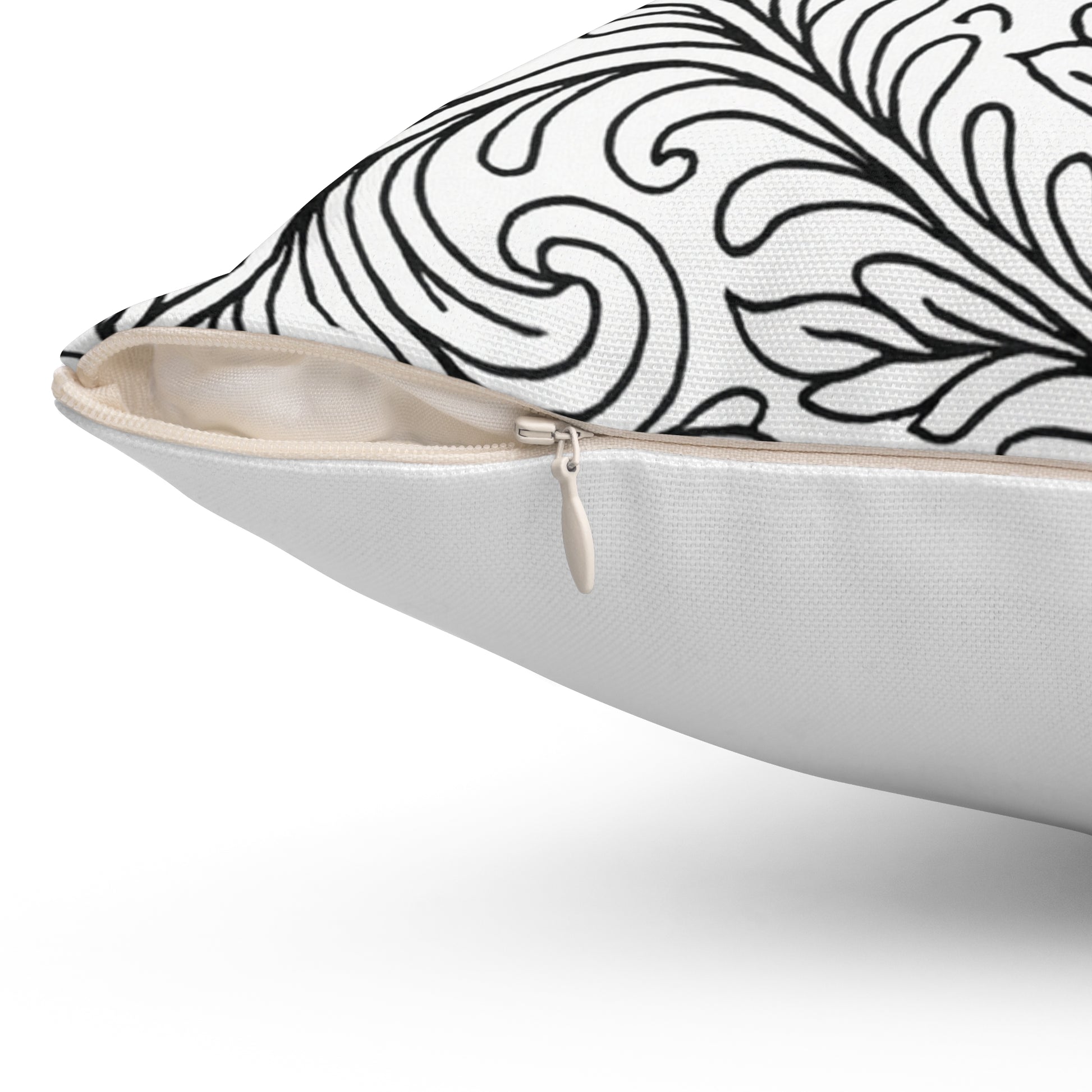 - Concealed beige zipper with metal head for a tidy finish