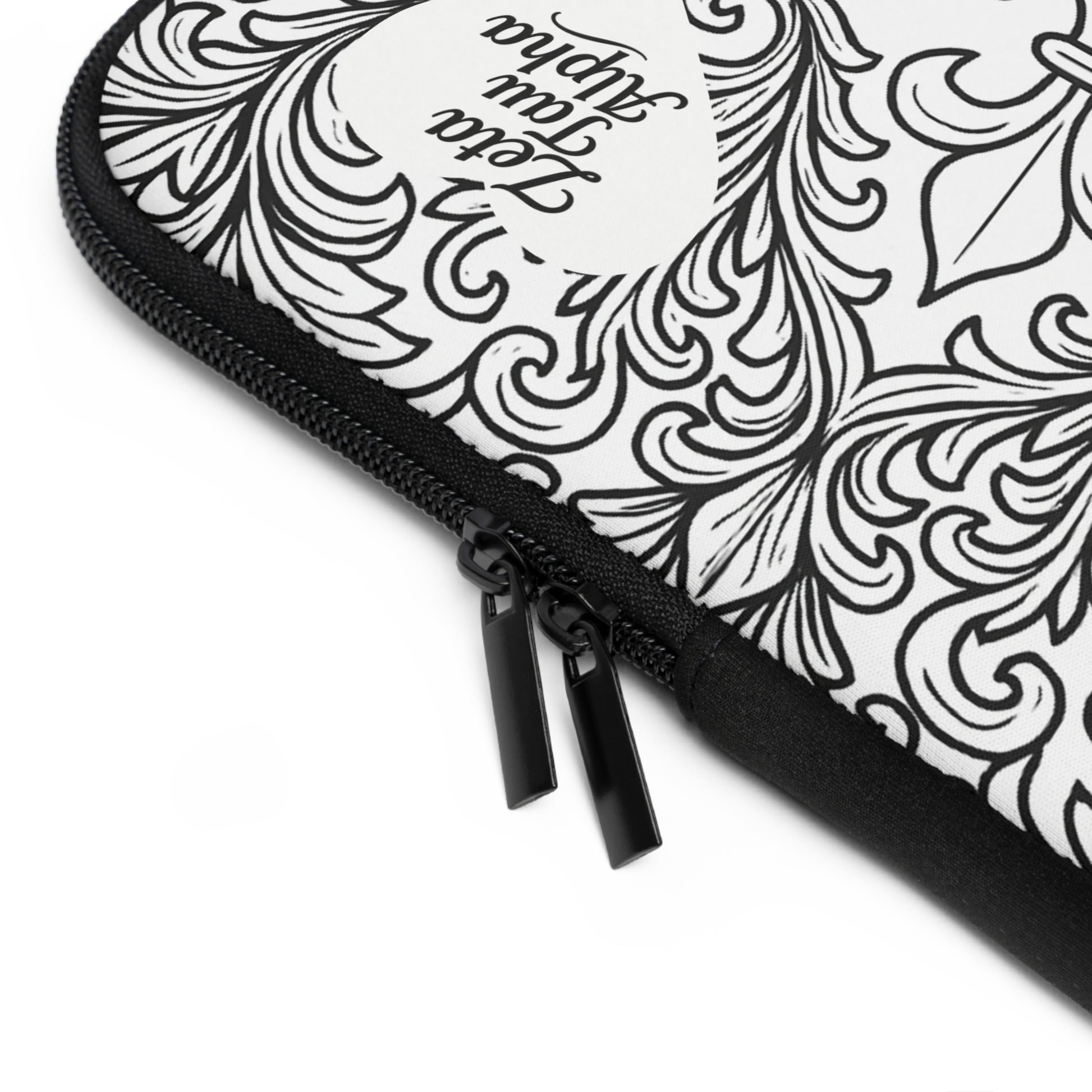 Zeta Tau Alpha Crown and Strawberry Laptop Sleeve — Black & White Decorative Protective Case